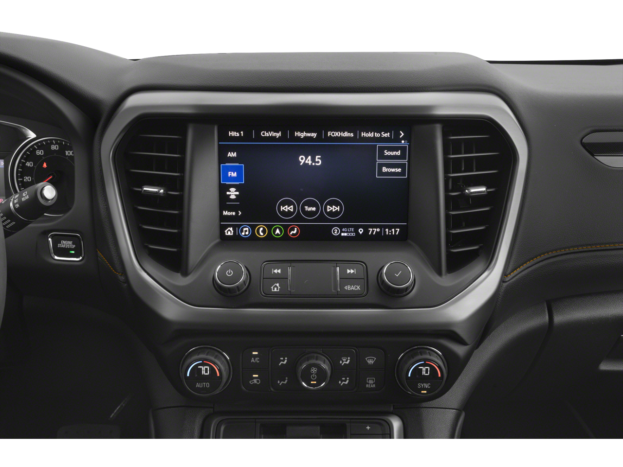 - 8" diagonal GMC Infotainment System with Navigation, includes multi-touch display, AM/FM/SiriusXM1 radio